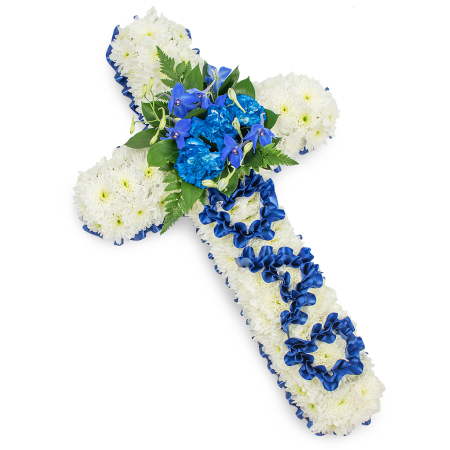 Express your heartfelt emotions with our Elegant bouquet, showcasing fresh white chrysanthemums beautifully accented with blue carnations and delphinium. This arrangement is the perfect way to convey admiration and love to someone special.