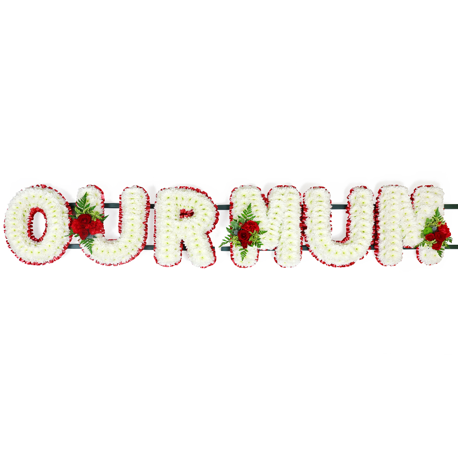 Express your heartfelt condolences with our stunning funeral arrangement, meticulously crafted to convey peace and support during trying times. This unique bouquet features a harmonious blend of white chrysanthemums, red roses, and red carnations, accented with lush greenery.