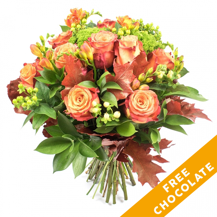 Infuse your home with sunshine using our Sunny Delight Orange Bouquet. This beautifully arranged bouquet features radiant orange roses, fresh freesia, and hypericum, expertly combined to represent joy and gratitude.